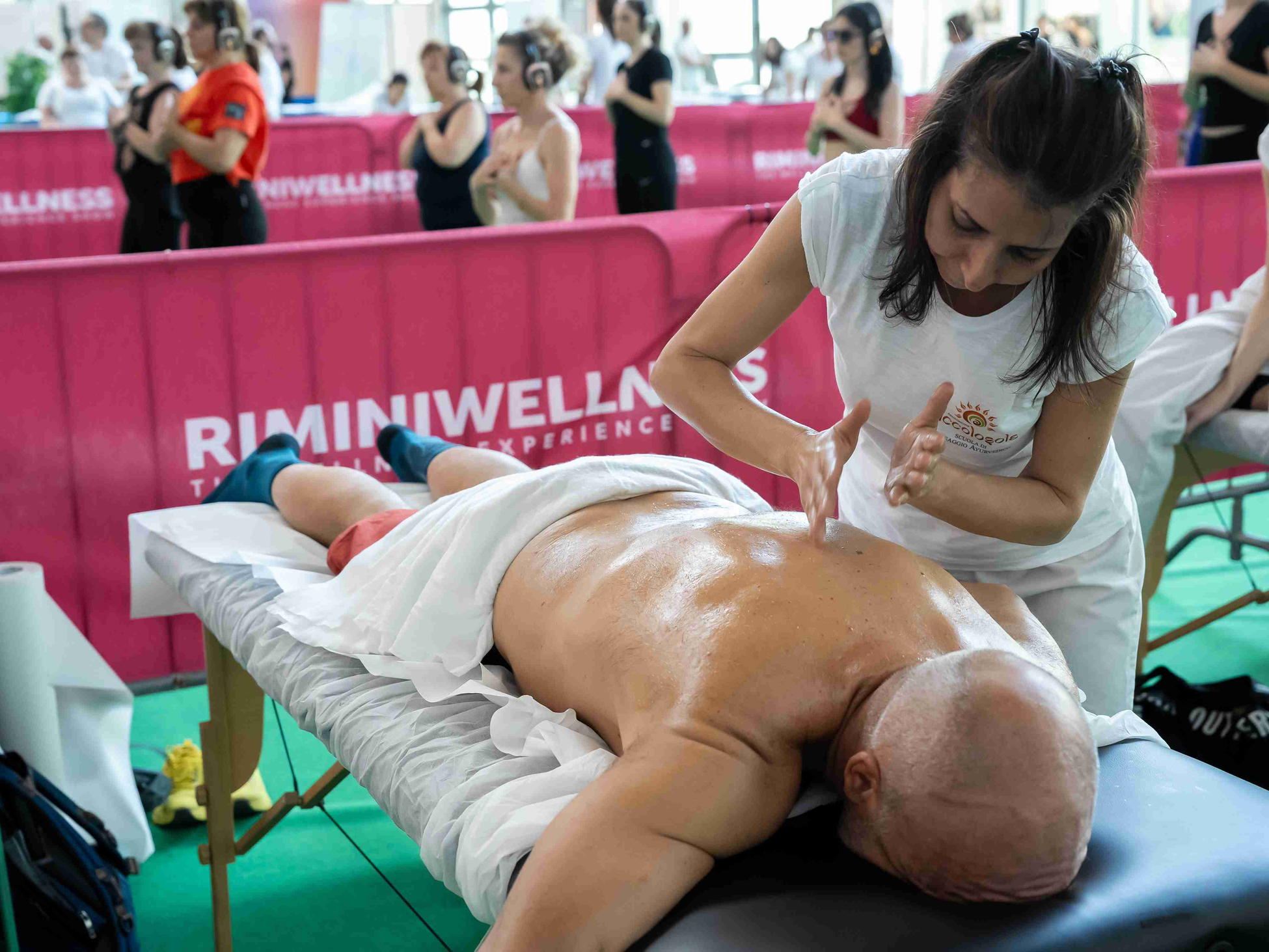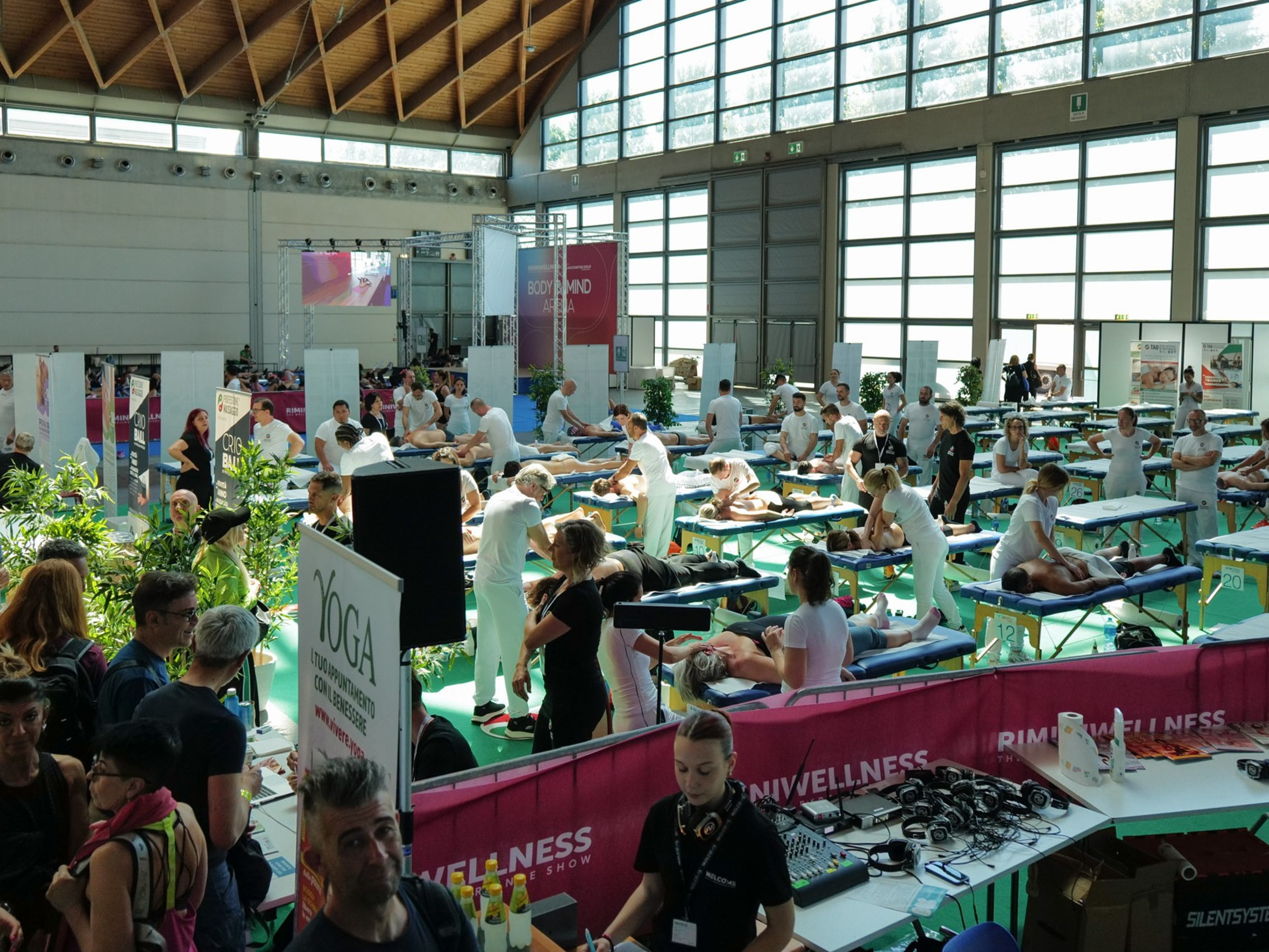 3 aree di 150 mq ognuna, sulla quale professionisti di arti per il benessere, illustreranno e faranno provare ai visitatori di RiminiWellness varie tecniche di manipolazione: massaggio rilassante, massaggio madero, massaggio energizzante, massaggio decontratturante, massaggio crio-dinamico (massaggio con ghiaccio), coppettazione, applicazione taping (linfatico/muscolare), massaggio sportivo pre-infra e post gara, sportivo high performance, antistress orientale, massaggi viso antiage orientale, californiano psicosomatico, kinesio taping muscolare, riflessologia (piede, viso, mani), ayurvedico e riflessologia facciale vietnamita.